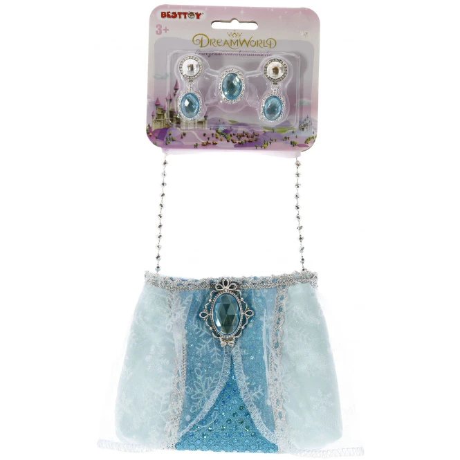 Du bist eine große Fashionista und bekommst gar nicht genug von edlen, glitzernden und schimmernden Accessoires, die dein Leben noch bunter und aufregender machen? Dann wirst du die hinreißende Prinzessinnenset lieben! Dieses eignet sich nämlich hervorragend, um der königlichen Robe den letzten Schliff zu verleihen und dank der niedlichen Handtasche die wichtigsten Gegenstände immer am Fräulein zu haben. Diese besteht aus Polyester, misst 17 x 13 cm und ist vor allem dank den liebevollen Gestaltung ein echter Augenschmaus, welchem ganz sicher keine kleine Königstochter widerstehen kann. Darüber hinaus erhältst du passenden Schmuck in Form von einem Ring sowie einem Paar Ohrringen, welche das royale Outfit ideal komplettieren. Also schnapp’ dir das Prinzessinnenset und erleb’ grenzenlosen Spielespaß!
