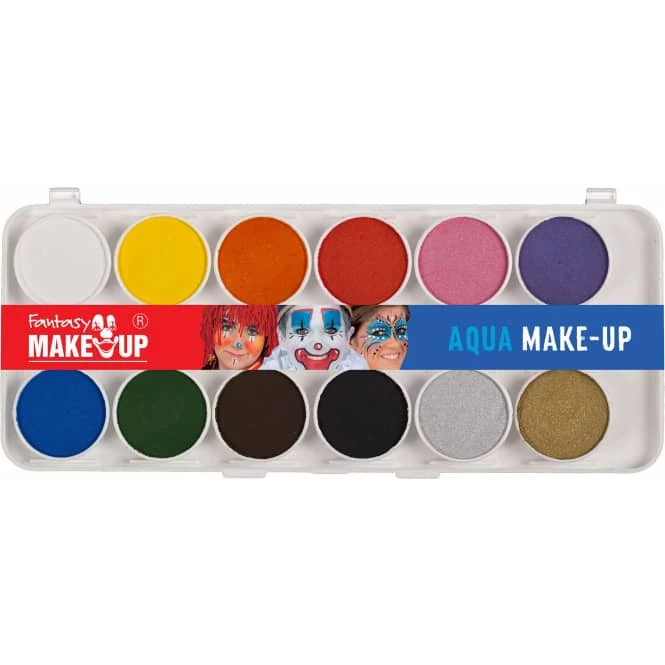 Im 12 teiligen Aqua Schminkkasten stecken jede Menge schillernde Farben