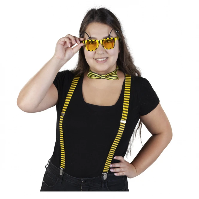 - Lieferumfang: 1 Set, bestehend aus Hosenträger, Fliege und Brille