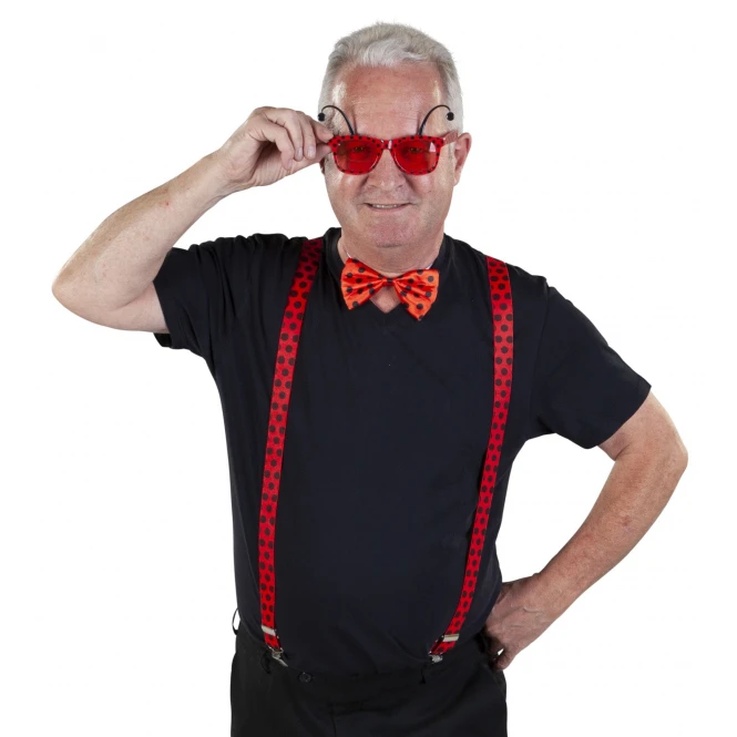 Faschingsnarren, aufgepasst! Das tolle Faschingsset – Marienkäfer ist die ideale Ergänzung für euer närrisches Outfit und somit genau das Richtige, um grenzenlosen Partyspaß zu erleben. Dieses ist nicht nur ein echter Hingucker, sondern überdies auch genau das Richtige für all diejenigen, die sich beim Stylen und Kombinieren gerne munter austoben. Es besteht aus Polyester, ist 3-teilig und beinhaltet Hosenträger, eine Fliege sowie eine Brille, die das i-Tüpfelchen eures lustigen Outfits ist. Also ran an das praktische Kostümzubehör und munter drauflos feiern!