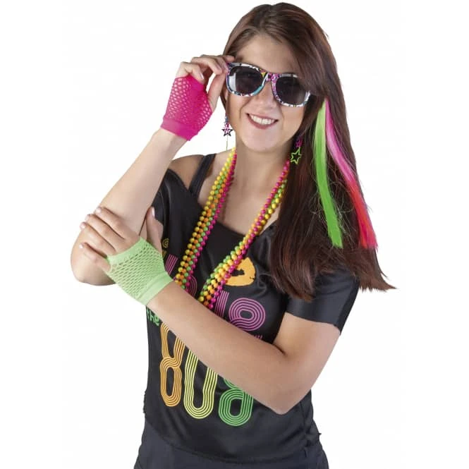 All diejenigen, die in der närrischen Zeit extravagante Kostüme bevorzugen und auf der Suche nach ebenso auffälligen Accessoires sind, kommen mit dem farbenfrohen Faschingsset – Hippie Queen vollends auf ihre Kosten! Mit diesem seid ihr an Fasching nämlich ideal ausgestattet und könnt eurer Fantasie beim Stylen munter freien Lauf lassen. Es ist 11-teilig und beinhaltet neben einer augenscheinlichen Sonnenbrille zudem ein Paar Ohrringe, zwei Haarsträhnen zum Festclipsen, vier neonfarbene Ketten sowie ein Paar Handschuhe, die das fröhliche Outfit ideal abrunden. Aus diesem Grund sind es die perfekten Accessoires, von welchen Sie an Fasching ganz sicher nicht genug bekommen. Also ran an das knallige Neon Queen-Set und grenzenlosen Partyspaß erleben!