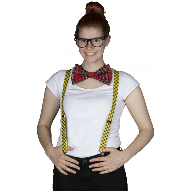 Sie möchten in der närrischen Zeit Ihr Inneres nach außen kehren und den inneren Freak frei walten lassen? Dann haben wir hier genau das Richtige! Das tolle Faschingsset – Nerd ist genau das Richtige für verrückte Professoren, skurrile Wissenschaftler oder wunderliche Nachbarn und somit das ideale Zubehör, um sich an Fasching kreativ auszutoben. Das Set ist 3-teilig und beinhaltet karierte Hosenträger, eine Brille sowie eine kauzige Fliege, die das schrullige Outfit optimal komplettiert. Mit den tollen Accessoires können Sie Ihrer Fantasie freien Lauf lassen und zeigen, dass Sie ein Händchen für schräge Verkleidungen haben. Also schnappen Sie sich das vielseitige Set und legen Sie gleich los!