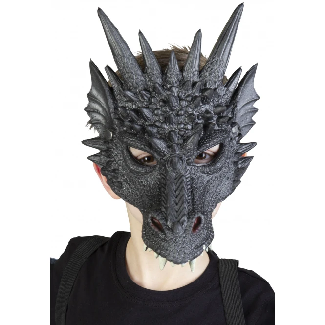 Ihr möchtet Familie, Freunde und Bekannte an Fasching oder Halloween gehörig in Angst und Schrecken versetzen und seid daher auf der Suche nach dafür geeignetem Kostümzubehör? Dann kommt ihr mit der supercoolen Halloweenmaske vollends auf eure Kosten! Mit dieser seid ihr aufgrund des grauenvollen Drachendesigns nicht nur ideal ausgestattet, sondern könnt eure Fantasie beim Kombinieren auch frei walten lassen. Kommt in Einheitsgröße für Kinder daher und ist das unkomplizierteste Accessoire, das ihr kriegen könnt. In Kombination mit einem dazu passenden Kostüm, einer düsteren Kutte oder authentisch gestalteten Flügeln (alles separat erhältlich) verwandelt ihr euch in Sekundenschnelle in einen furchterregenden Drachen, dem unvergessliche Halloween- und Faschingspartys garantiert sind.
