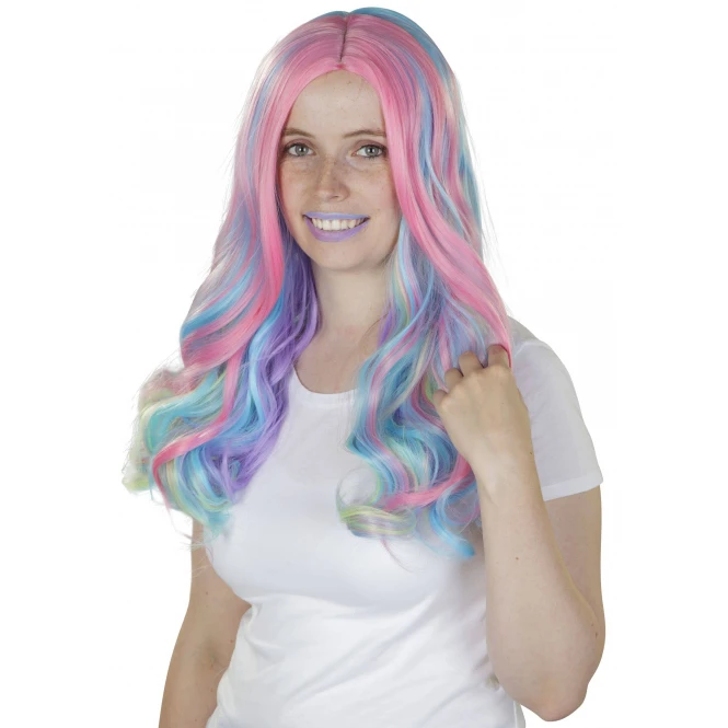 Langhaarperücke für Erwachsene – Pastell-Regenbogen