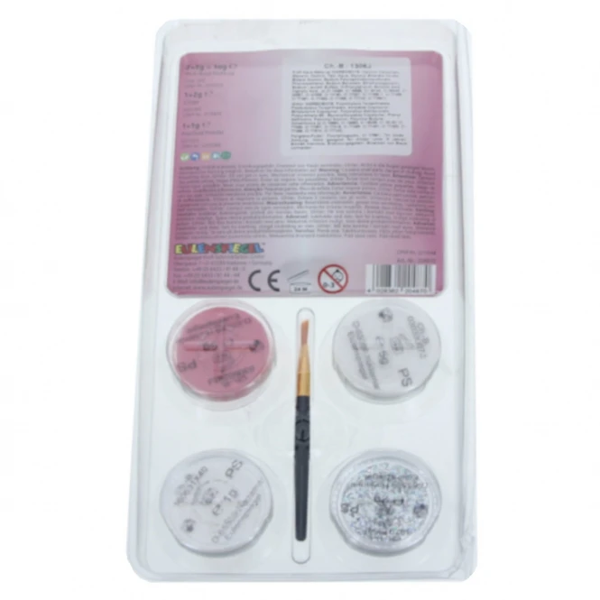 - Lieferumfang: 1 Set, bestehend aus vier Farben, einem Pinsel sowie einer Schminkanleitung